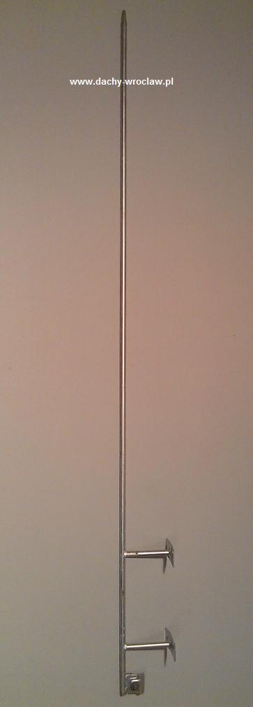 Instalacje odgromowe na dach płaski i skośny. Uchwyty na pokrycie dachowe z papy oraz pod dachówkę. Uchwyty do drutu piorunochronu wykonane są ze stali ocynkowanej ogniowego/termodyfuzyjnego.